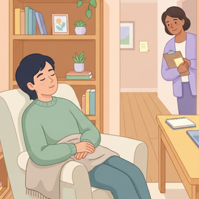 不安が強くなった時は、静かな別室や少し離れたスペースで一人になって休むことができます。スタッフは、ご本人が今どのような辛さを感じているかを決して否定せず、落ち着くまで寄り添います。